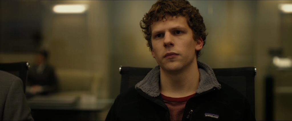 Now let’s breakdown some aspects of Any Rand’s Screen Guide and the elements that are illustrated by Fincher in the film. The concept of the independent man as described by Rand is based solely on ignoring conformity and praising the independent workings of an individual. Mark Zuckerberg is an “independent man” who has his ‘own’ idea of a company that gives people the freedom to express themselves via a social networking site. Sharply contrasted by his best friend Eduardo Saverin (Andrew Garfield) who conforms to the “norms” of college life by getting into a prestigious finals club called The Phoenix. Going along with Rand’s idea of praising the independent individual, Zuckerberg is praised over and over for creating this multi-billion dollar corporation. One thing you’ll notice with David Fincher and his directing of this film is that he makes it a point not to smear Zuckerberg’s idea and carefully outlines all three stories recalling the early days of Facebook. As the story progresses we see Zuckerberg becoming more and more independent (and lonely) and while it seems he wants create the entire site “The Facebook” himself he realizes he needs help from others and gains help from Eduardo on the business front in order to make money. Throughout the film there is this lingering thought that Erica as well as Eduardo are the fuel for a lot of the decisions Zuckerberg makes. This however is the turning point for the glorification of the independent man.