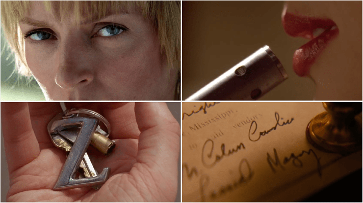 The extreme close-ups tie in usually with the crash zoom (The Bride example for one shown below). Tarantino really likes to focus on the smaller aspects on the screen and there are so many close-up shots to choose from.